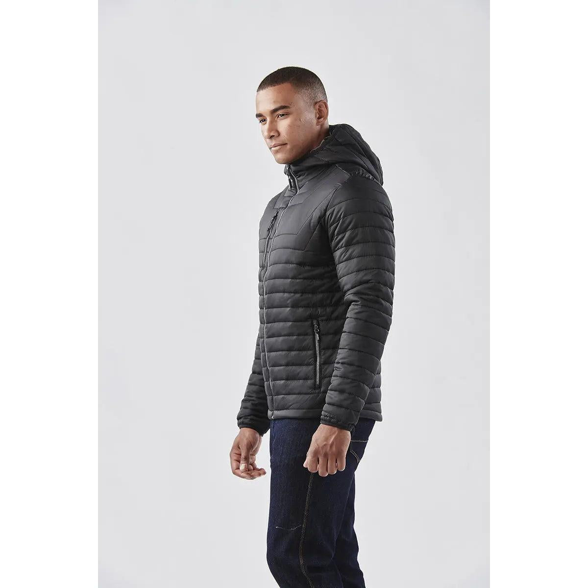 Quilted comfort from hem to hood. Ultra-lightweight with a sleek snug fit and heat-trapping polyfill insulation. Elasticized cuffs and attached hood help retain core warmth, while an outer shell keeps you dry.